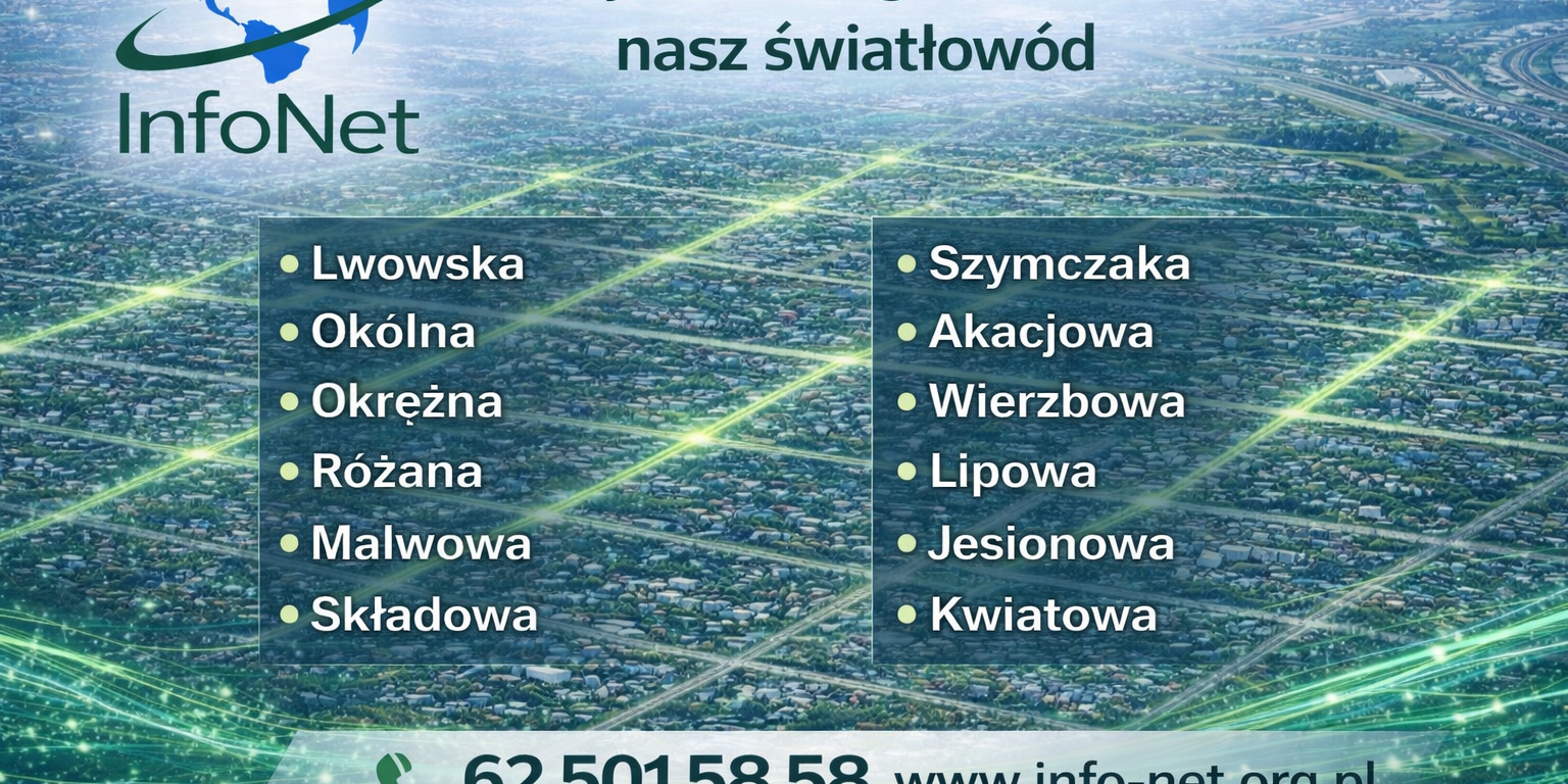 Od teraz internet światłowodowy Info-Net jest dostępny również przy następujących ulicach: