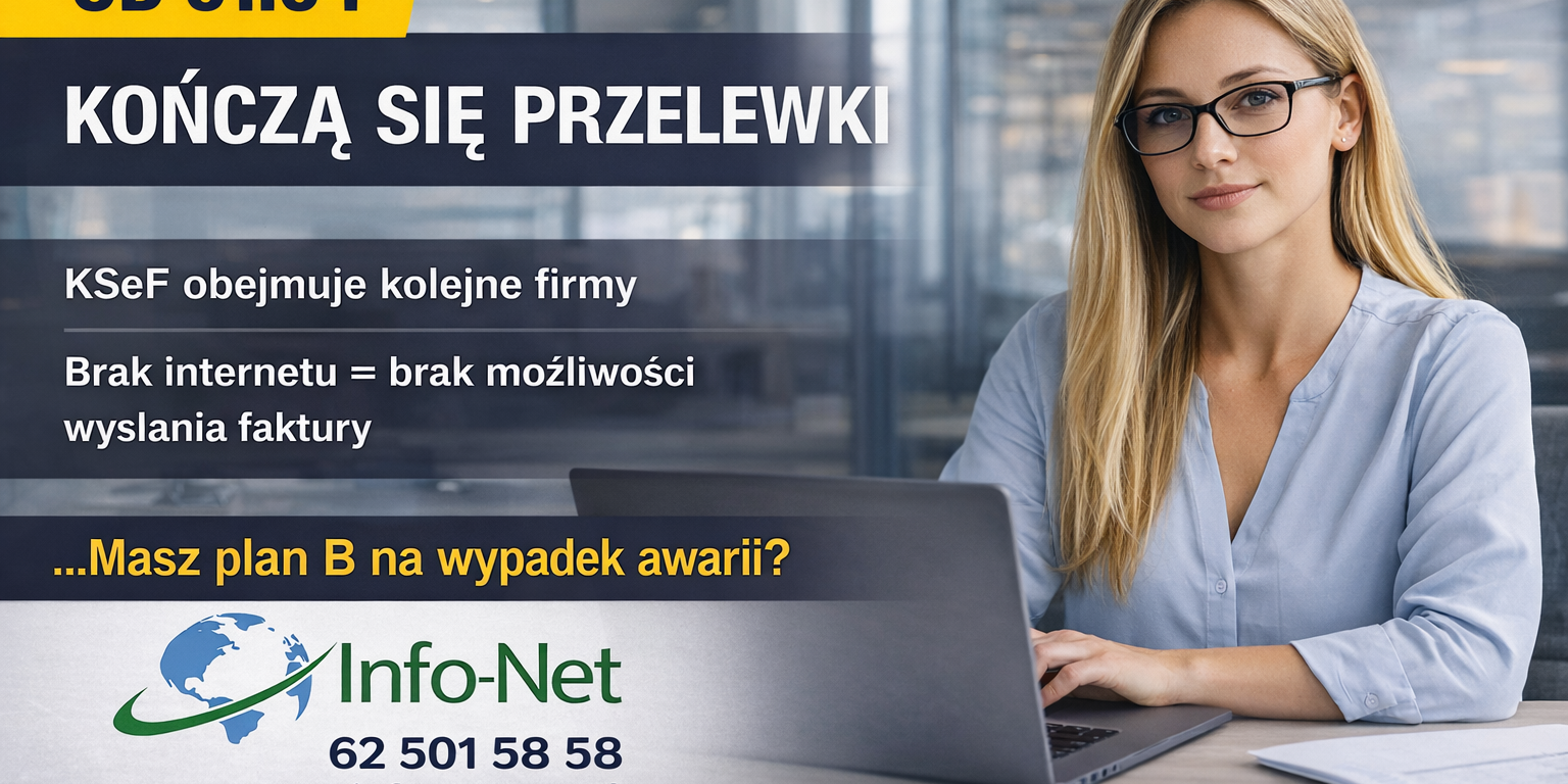 Od 1 kwietnia 2026 roku obowiązek korzystania z Krajowego Systemu e-Faktur (KSeF) obejmuje kolejne firmy w Polsce. Dla większości przedsiębiorców oznacza to nową rzeczywistość, w której internet staje się usługą krytyczną dla codziennego funkcjonowania biznesu. Zgodnie z harmonogramem wdrożenia, od tej daty obowiązek obejmuje pozostałych przedsiębiorców poza największymi podmiotami objętymi od 1 lutego. (Krajowy System e-Faktur)